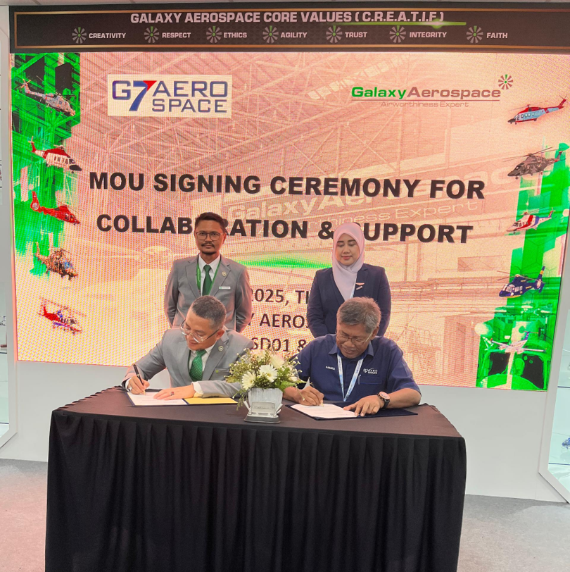 The signing ceremony was witnessed by senior representatives from both companies, including Galaxy Aerospace CEO and G7 Aerospace COO, symbolizing a shared commitment to strengthening national defence readiness through local MRO capabilities.